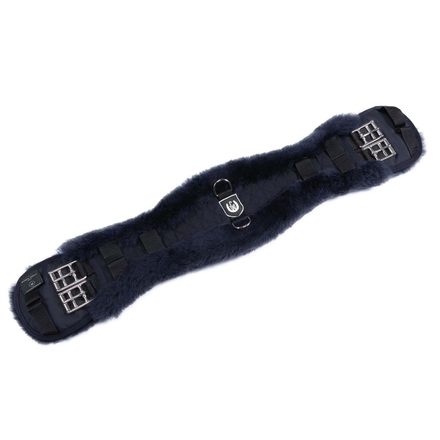Der Lammfell-Konturgurt Dressur ist mit echtem Lammfell ausgestattet. Die Schnallen und D-Ringe sind aus Edelstahl. Die Wollhöhe beträgt ca. 30 mm.