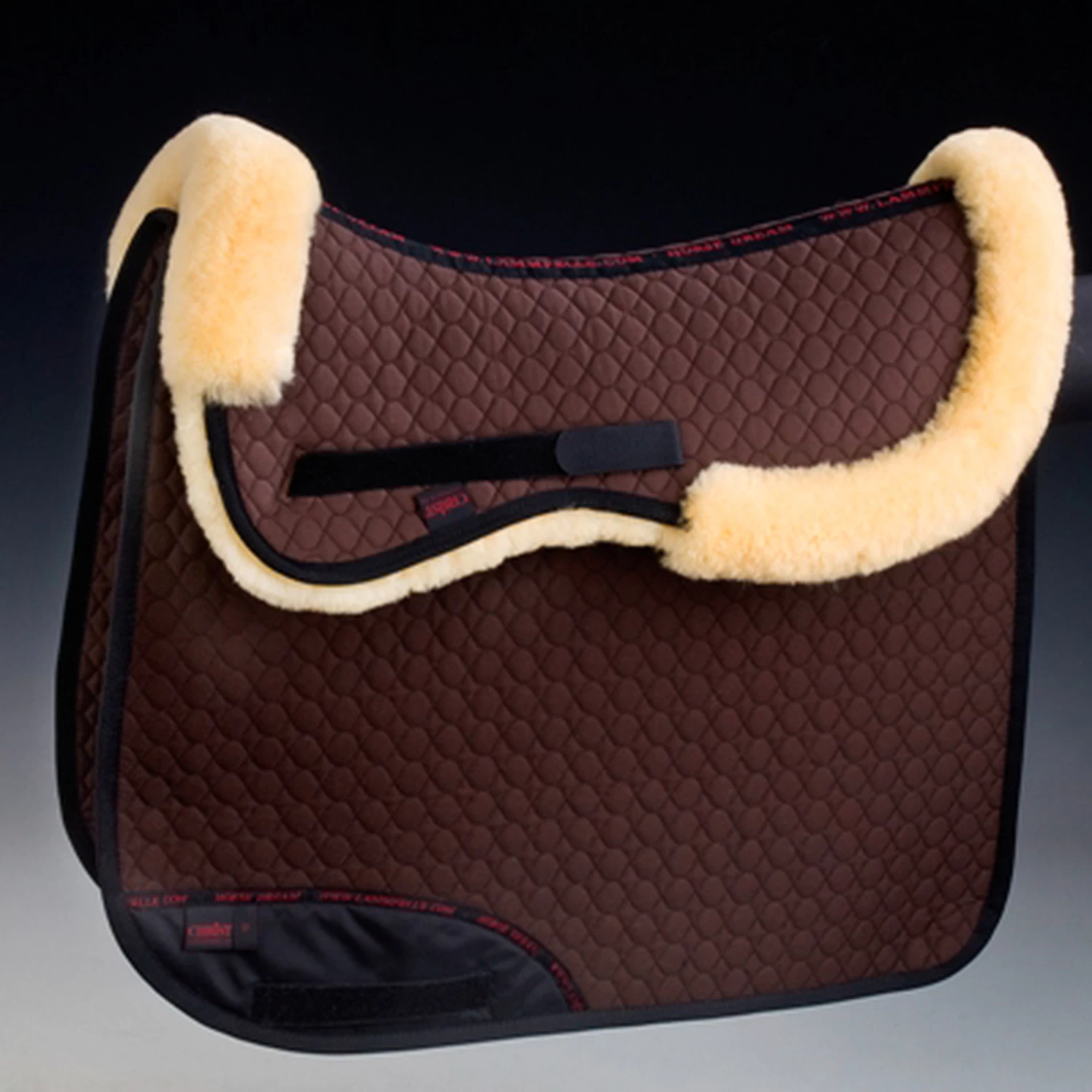 Eingearbeitete Öffnungen statt Klettstrupfen erlauben die Verwendung AUF einer Schabracke (z.Bsp. bei Turnieren). Doppelte Strupfen werden vermieden. Die Unterseite besteht aus echtem Lammfellfell mit einer Wollhöhe von ca. 30mm. Die Oberseite wird aus unserem strapazierfähigen Satteldeckenstoff gefertigt. Vorne ist das Lammfell bis auf die Oberseite herumgezogen und dient als Sattelanlage. Der hintere Lammfellrand wirkt als zusätzlicher Kantenschutz und schmückt optisch. Maschinenwaschbar mit einem Lammfellwaschmittel sowie trocknerbeständig. Als Waschmittel empfehlen wir unser Produkt „C7“. Bitte beachten Sie unsere Pflegehinweise. Der Teppich ist nicht inbegriffen.