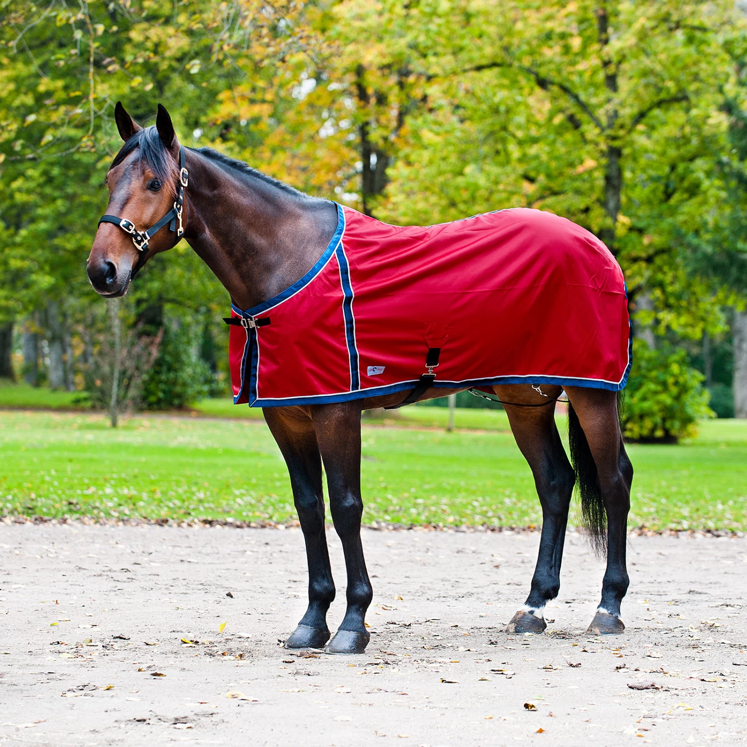 Schön entworfene und gut geschnittene Enstex Sommerdecke. Exzellente Decke für den Transport oder im Stall. Die Decke hat handliche Brustverschlüsse, Begurtung und Beinschnüre. Exzellente Wahl für eine Bestickung mit dem Pferde- oder Stallnamen.