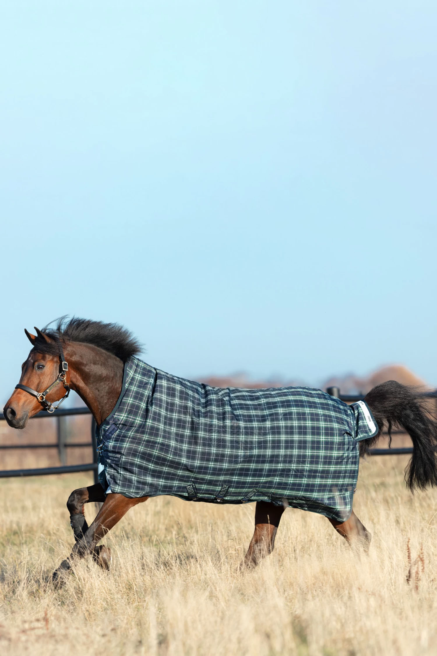 Gewebe: Einzigartige Barrieren-Technologie mit 1000D Polypropylen außen, was die wasserdichte und atmungsaktive Schicht darunter schützt. Polypropylen ist eine stärkere Alternative zu dem weit verbreiteten Polyester Weidedecken-Material. Inklusive anti-statischer, anti-bakterieller Polyester-Fütterung und thermisch aufgeschlossener Faserfüllung. 85.