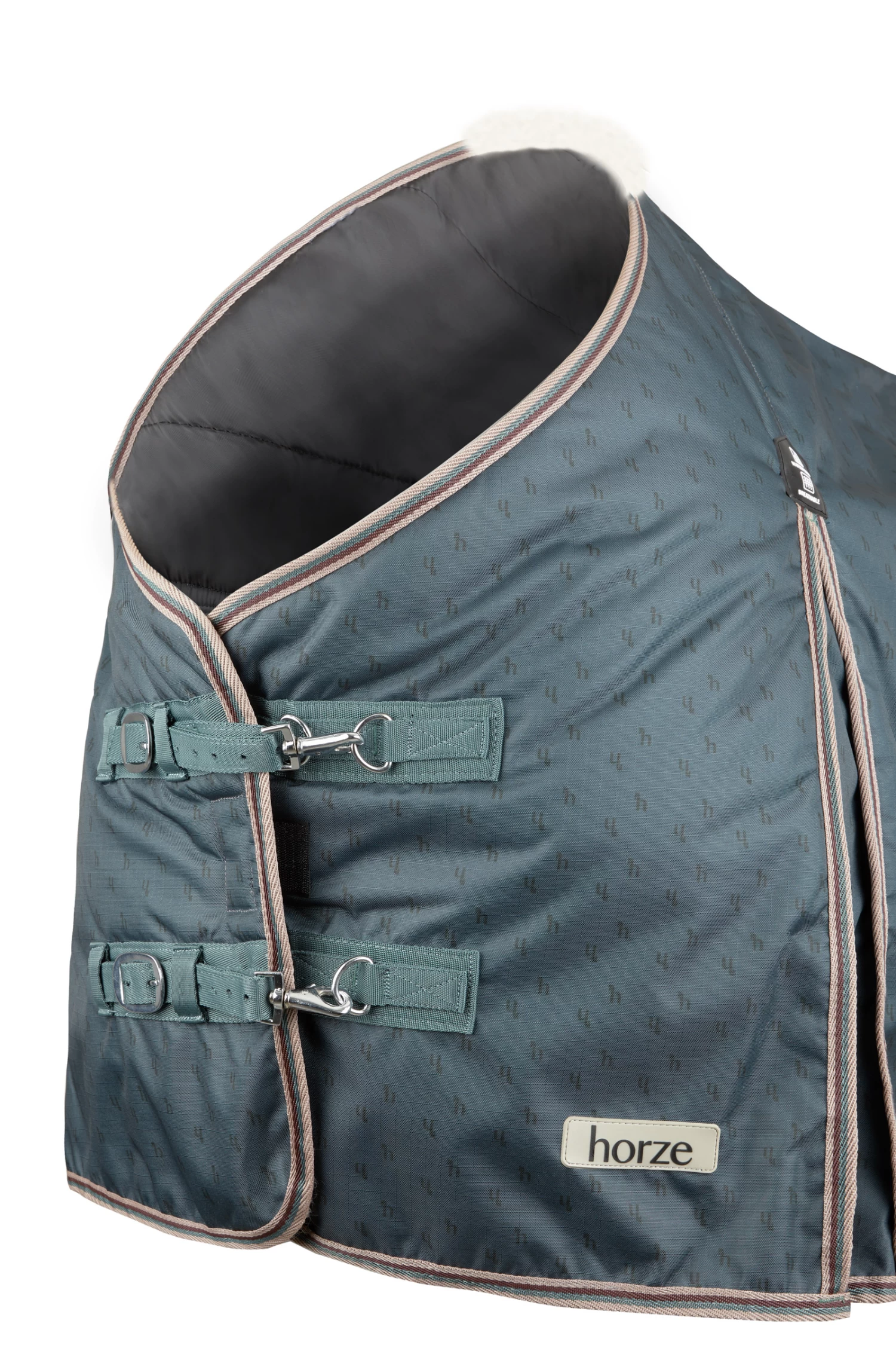 Die Horze Leighton Regendecke ist aus wasserdichtem Material mit warmer Füllung hergestellt. Der doppelte Frontverschluss, die Kreuzgurte und der Schweiflatz verhindern Verrutschen. Die hohen Gehfalten schränken die Bewegungsfreiheit deines Pferdes nicht ein. Der Horze-Logoaufdruck sorgt für einen klassischen Stil. Kombiniere diese Decke mit dem Rest unserer Horze Leighton Teens Kollektion für einen kompletten Look!