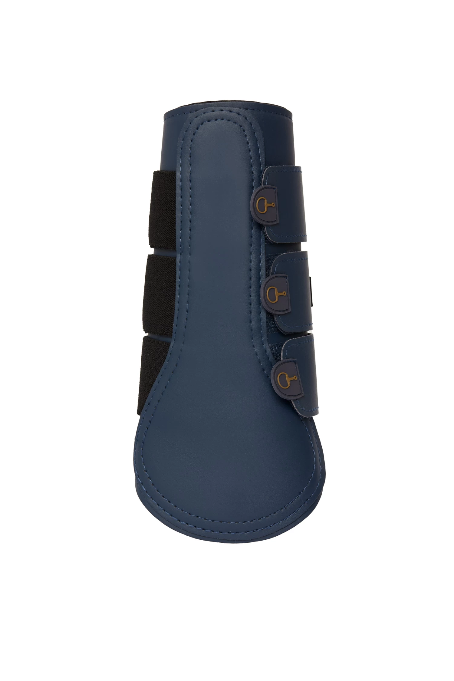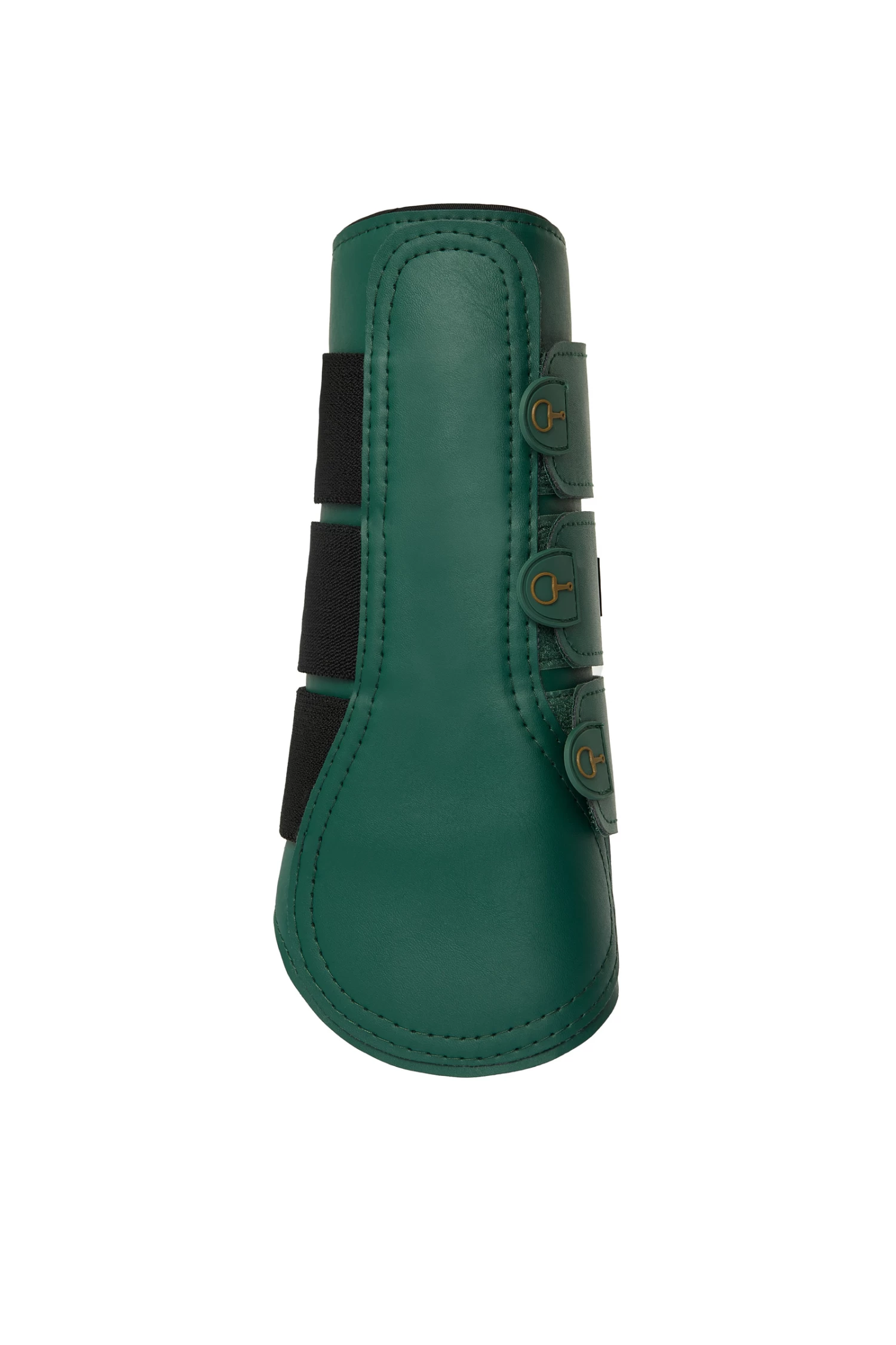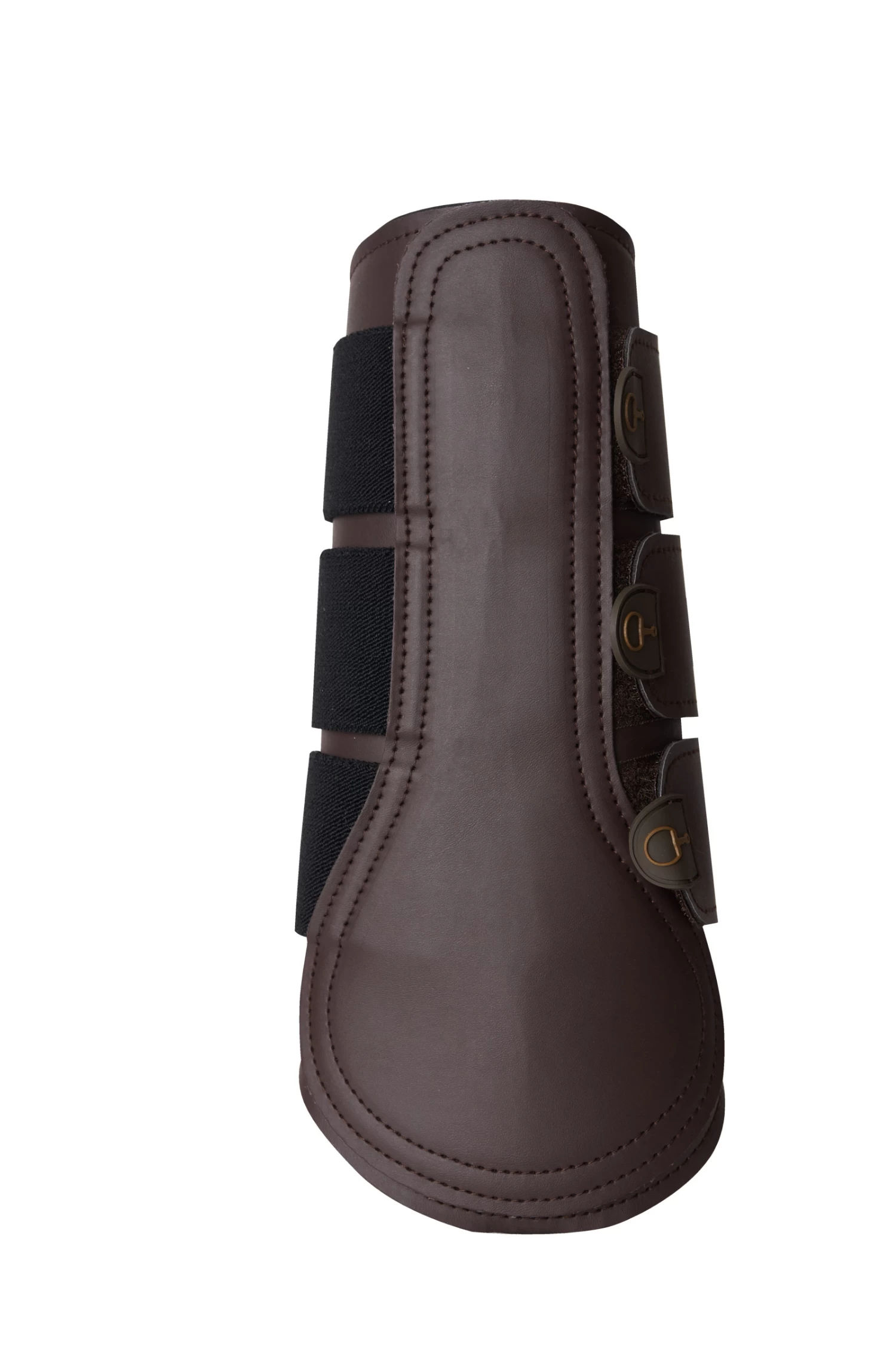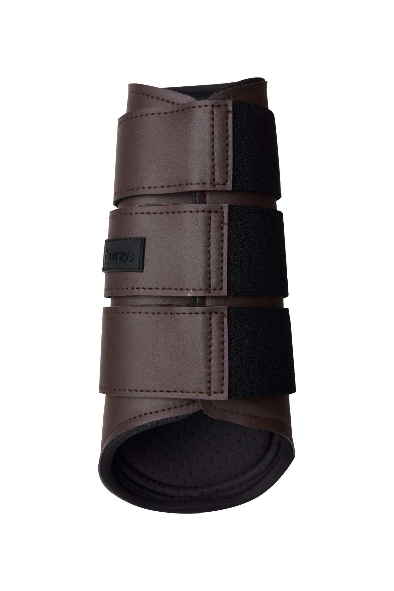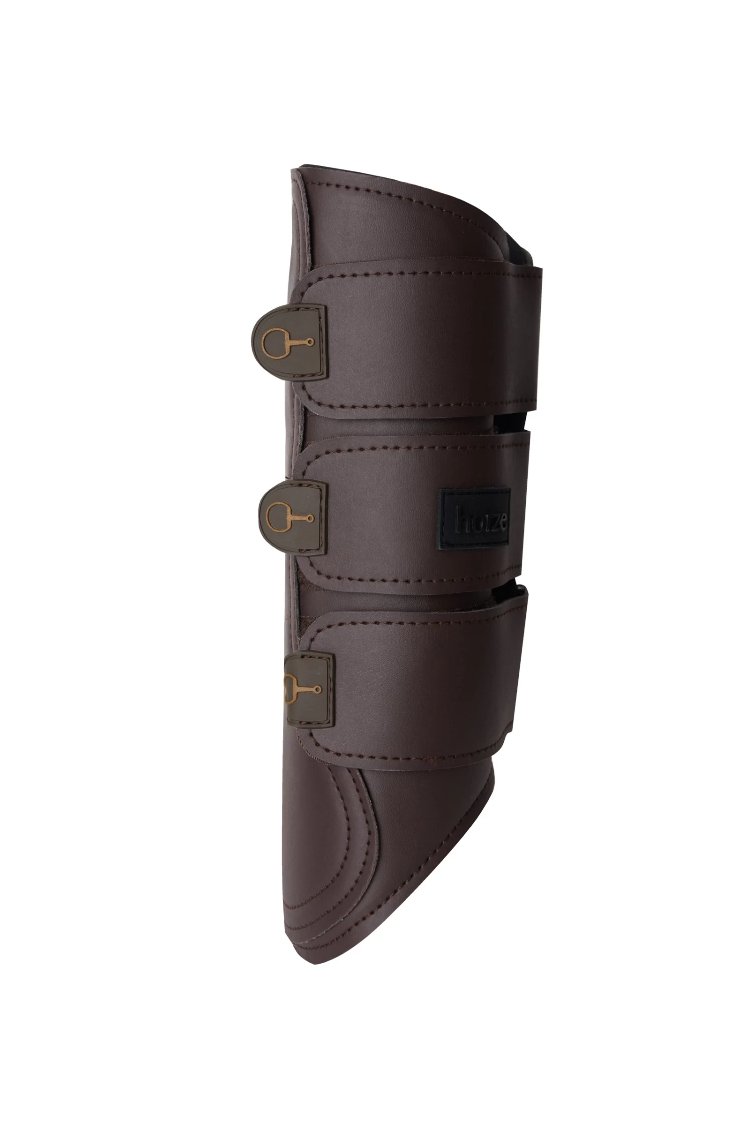 Die Horze Noir Gamaschen sind aus robustem Kunstleder gefertigt und mit Neopren gefüttert. Starke Klettverschlüsse schließen sicher und Zuglaschen erleichtern die Handhabung. Kombiniere sie mit den Horze Noir Hufglocken für einen kompletten Look!