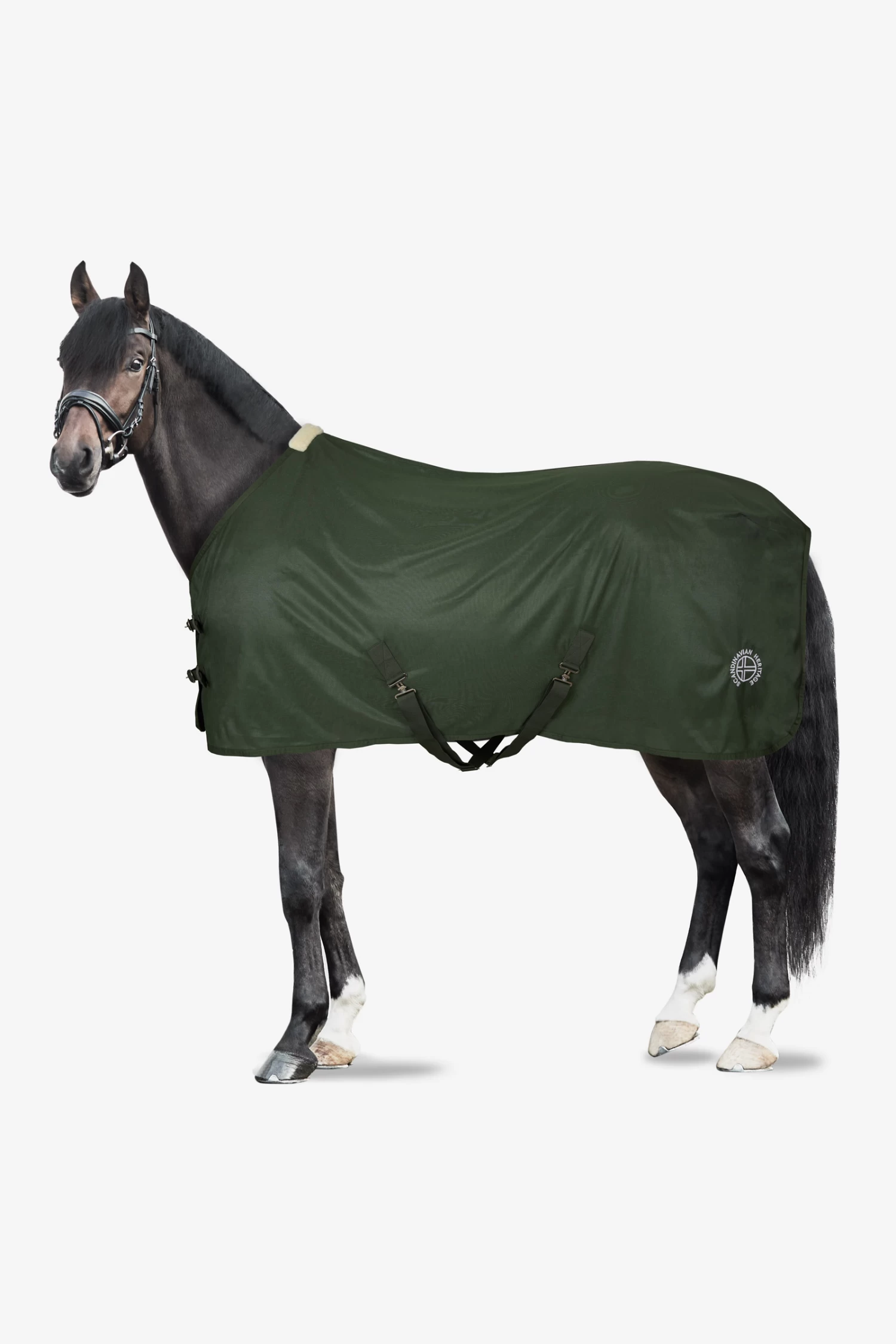 Unsere Horze Oslo Abschwitzdecke ist aus sehr dichtem Netzmaterial gefertigt. Weiches Kunstfell am Widerrist sorgt für Komfort. Zwei Frontschnallen, Kreuzgurte und ein Schweifriemen halten diese Decke an ihrem Platz. Die gedeckten Farben lassen sich leicht in deine Reitausrüstung integrieren. Kombiniere sie mit unseren passenden Horze Oslo Hufglocken, Halfter und Führstrick für ein komplettes Outfit!
