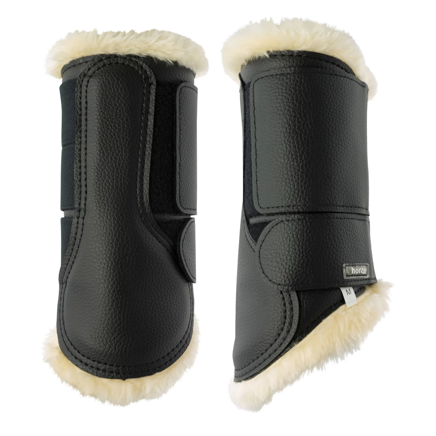 Die qualitativ hochwertigen Gamaschen schützen Ihr Pferd während des Trainings oder des Turniers mit einem weichen Fellimitat aus Schaffell und einer harten, aber flexiblen Hülle. Diese Gamaschen umschließen das Röhrbein und den Fesselkopf und bieten Schutz vor Schlägen und Stößen.
