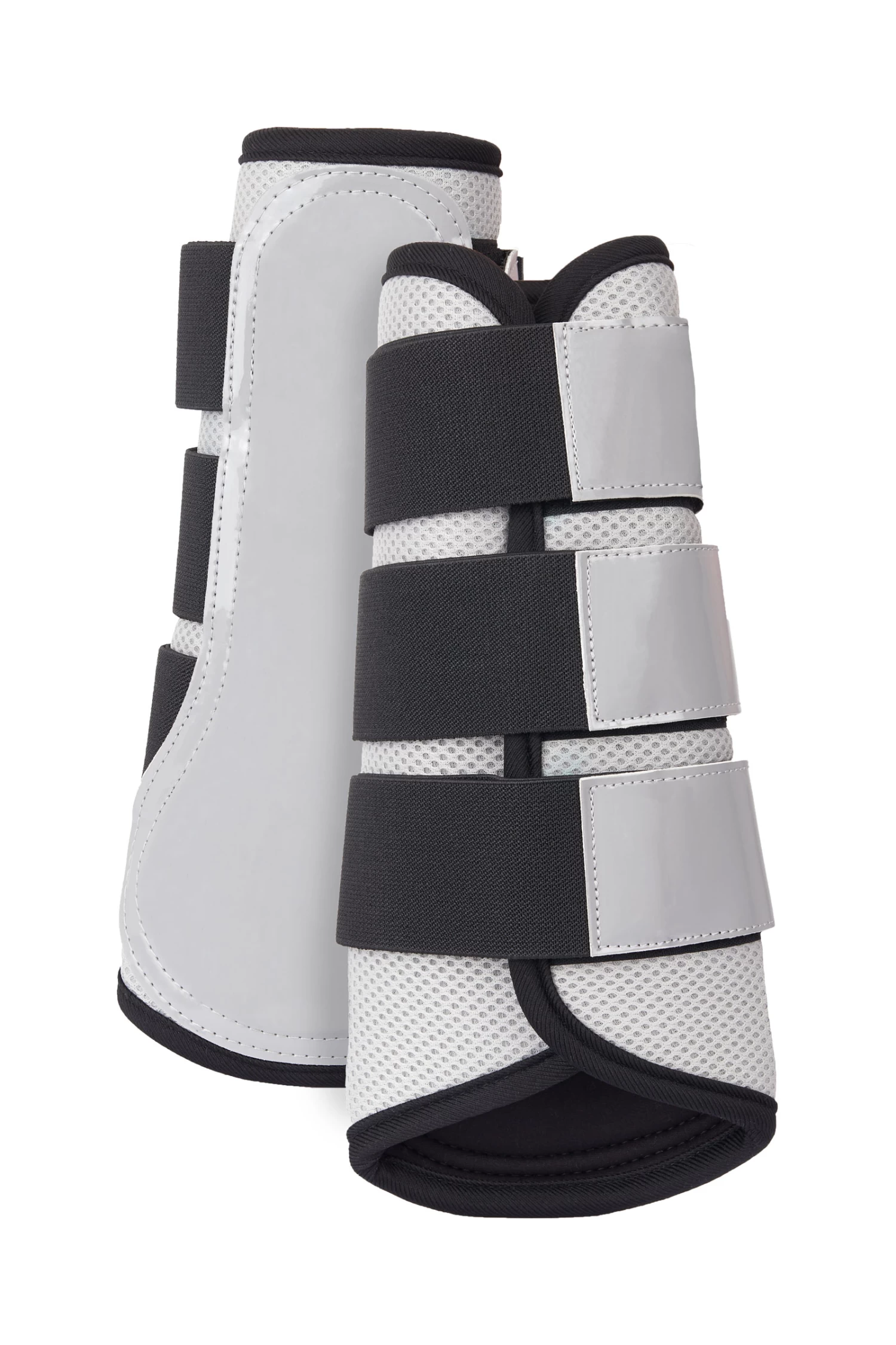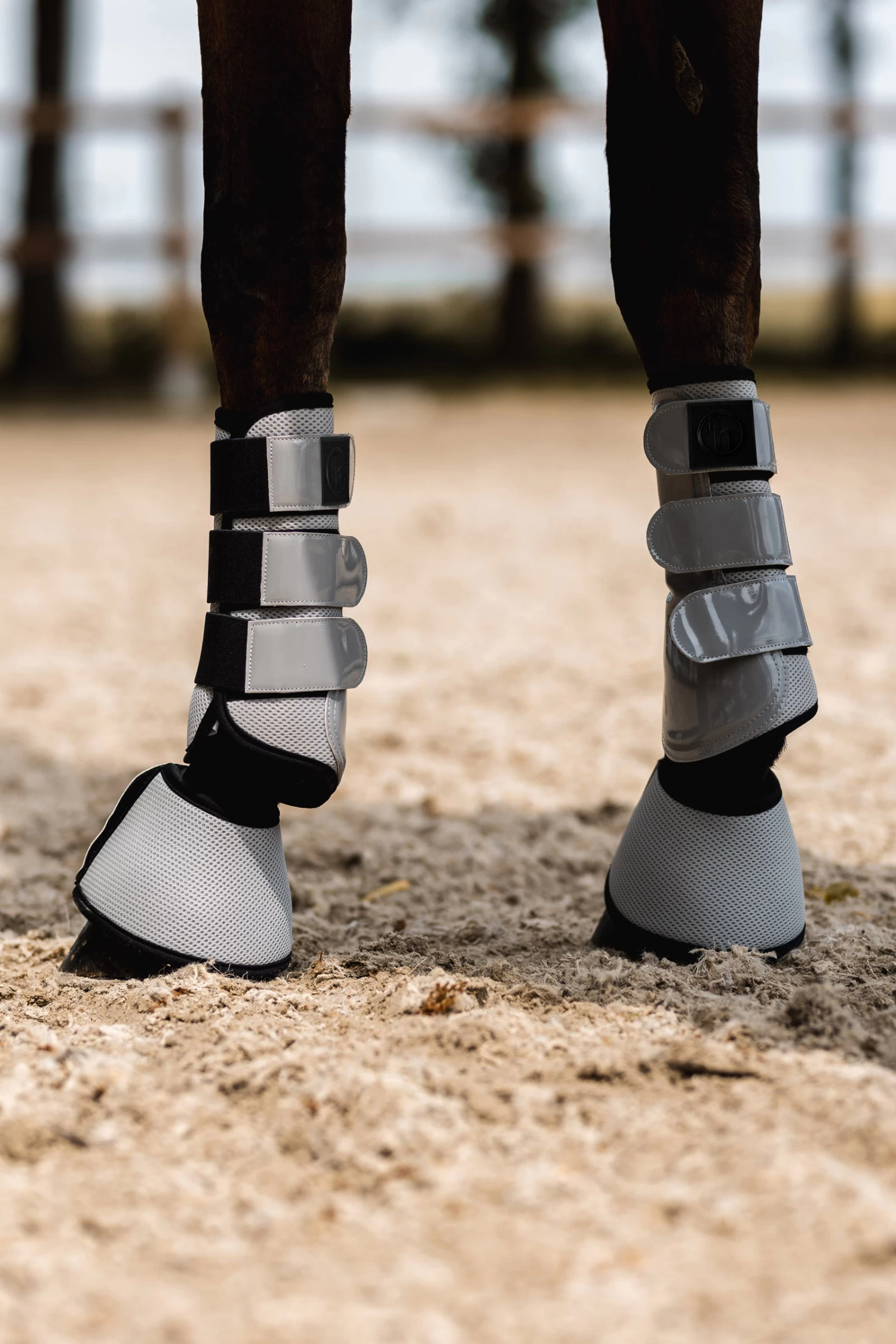 Gamaschen passend zur Smoky Twilight Kollektion. Hergestellt aus dickem, stoßabsorbierendem 3D-Mesh-Gewebe für eine verbesserte Luftzirkulation um die Pferdebeine. Der Schlagschutz ist verstärkt und schützt wie alle anderen Gamaschen. Eine weiche Einfassung verhindert Wundscheuern und elastische Klettverschlüsse sorgen für einen sicheren Sitz.