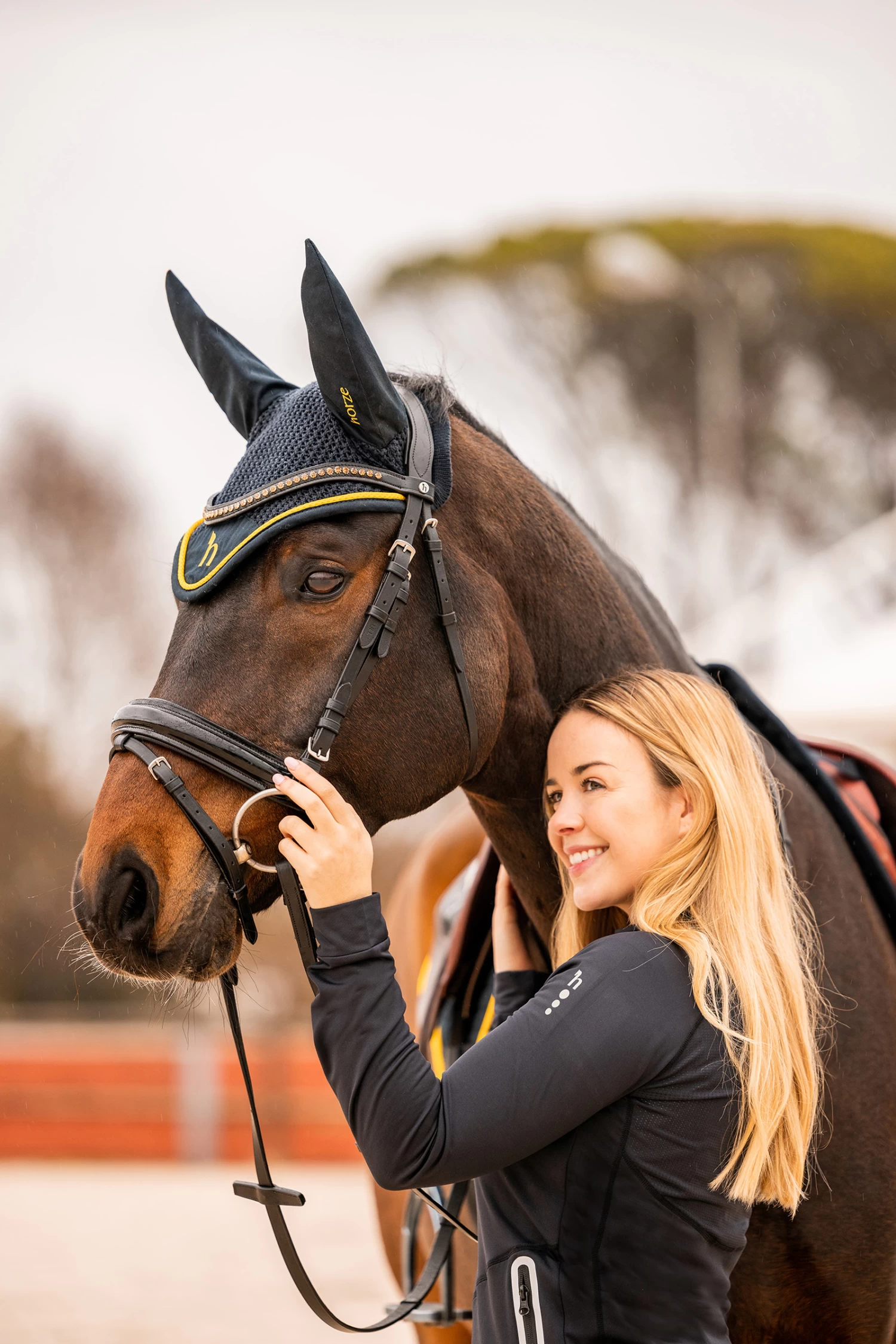 Sportliche, funktionelle Fliegenhaube für das tägliche Reiten.