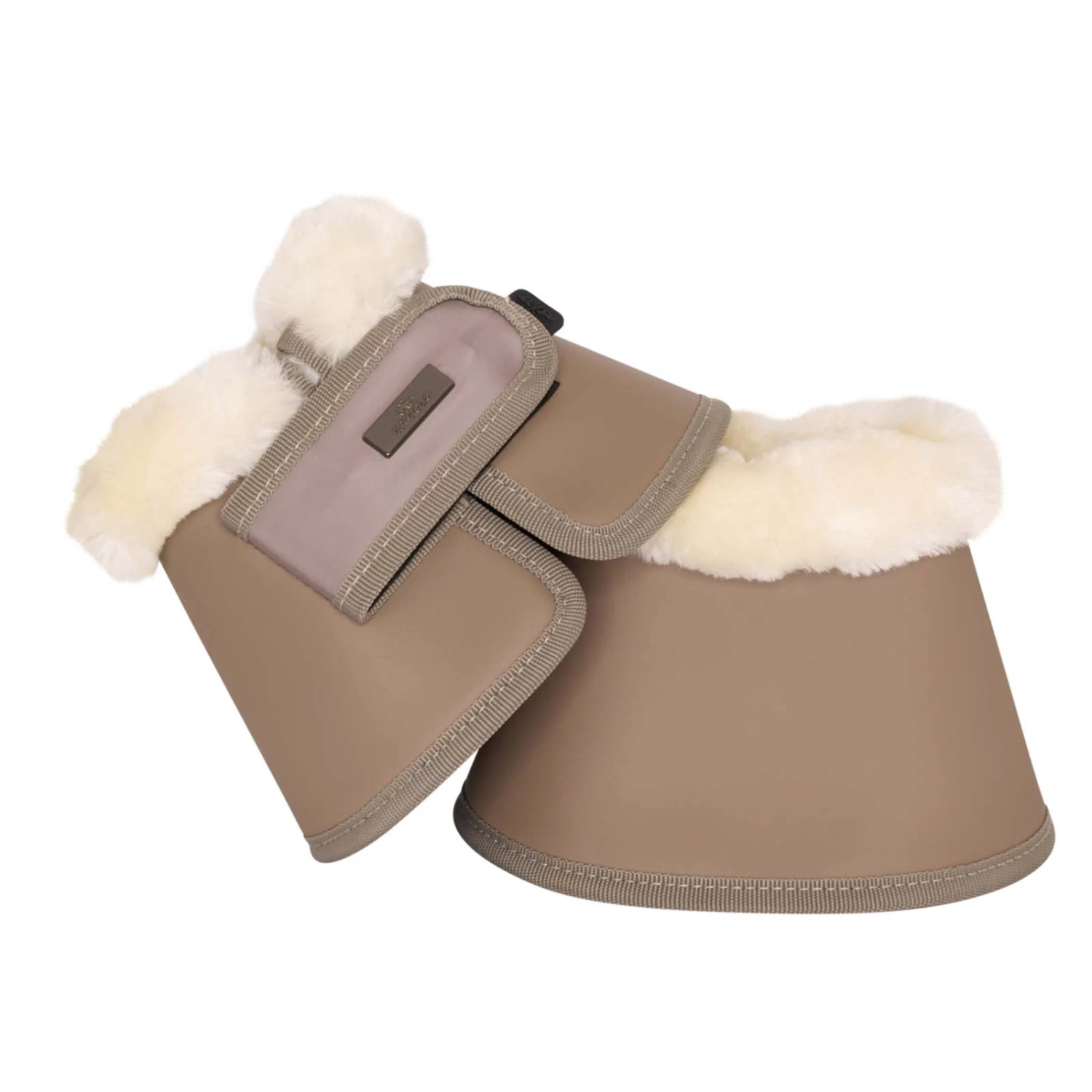 Hufglocken aus PU-Material mit einem Verschluss aus Fake-Memory-Material. Die Springglocken haben ein Futter aus Kunstpelz. Mit kleiner Metallplatte und Gummilabel am Verschlussriemen.