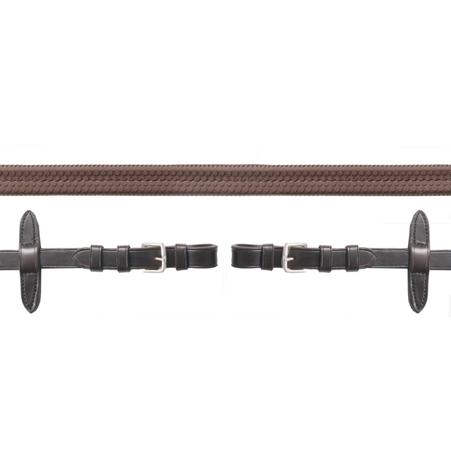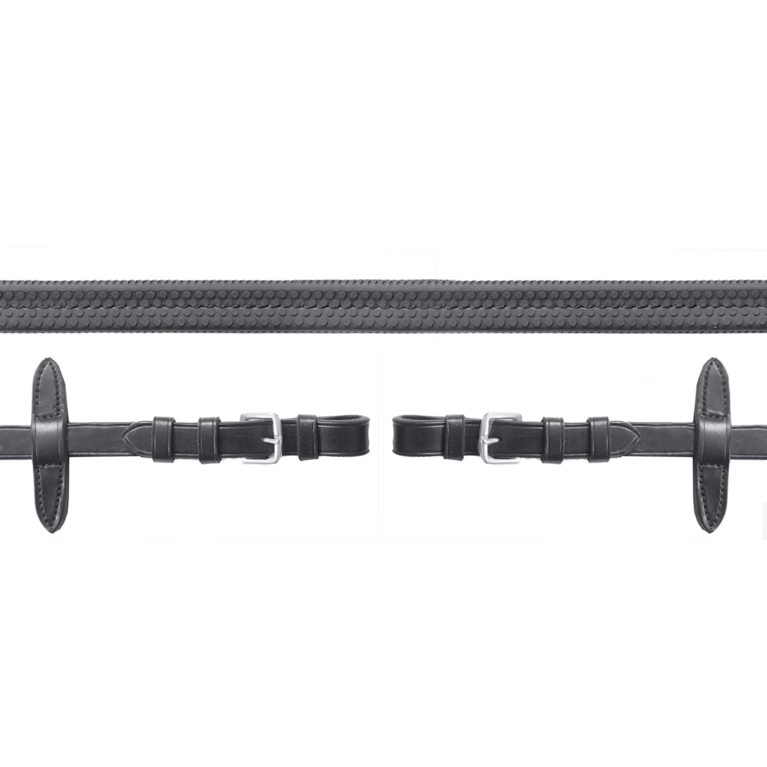 Hochwertiger, strapazierfähiger Gummizügel mit Martingalstopper.