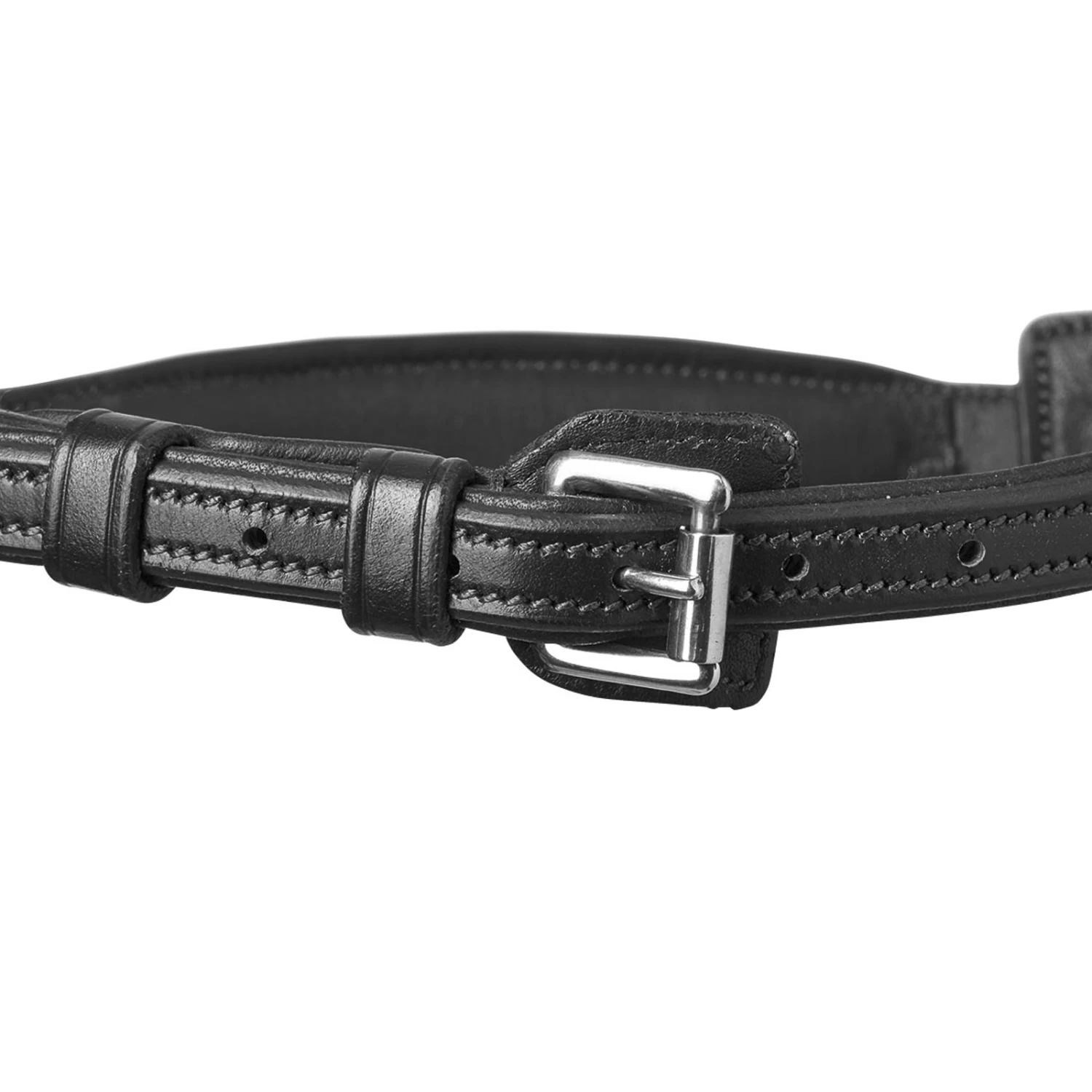 Perfekt angepasst: Das hannoverische Noseband Turin Select. Das in der Weite verstellbare mit unterfütterten Schnallen versehene Reithalfter passt perfekt in die „Anatomic Line – Select & Mix“! Durch die Ringe, die mit eingelassenen Stoppern versehen sind, lässt sich ein 90° Winkel garantieren. Außerdem sorgt der vollständig gefütterte Riemen für einen hohen Tragekomfort.
